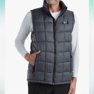 REEBOK MENS QUILTED, INSULATED WINTER PUFFER VEST SLEEVELESS GREY SIZE MEDIUM