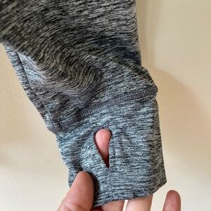 REEBOK Sz M Marled Gray Hoodie Thumbholes Stretch Activewear Top Sport Shirt