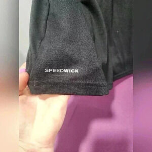 This black Reebok tee shirt top is the perfect addition to your activewear collection. Featuring the SPEEDWICK and Reebok logos, this polyester top is lightweight and easy to care for. The shirt has a crew neckline and short sleeves, making it ideal for summer, fall, and spring.