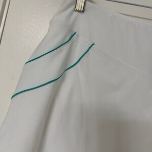 REEBOK • White w/ Green Trim Pleated Back Tennis Athletic Workout Skirt Skort