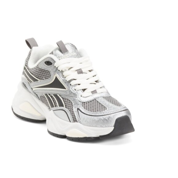 pull on loops, toe bumper, grip sole, leather details, metallic accent, lightly cushioned footbed, brand logo accents, mesh panels