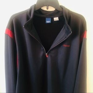 Reebok golf men’s pull over, 2 XL, black and maroon, half zip.