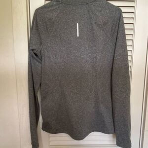 Like new Reebok women’s heather grey dry fit fitted jacket. EUC, great shape, size medium, fitted to keep you warm and wick away moisture. Full zip front, reflective stripes, thumb holes, see pictures for details.