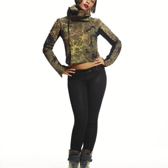 REEBOK x ALICIA KEYS RARE Camo Military Cargo Reptile Cropped Jacket Moto HTF