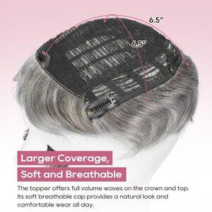 ✨ [Larger Base for Maximum Coverage] Featuring an extended 6.5"x6.5" base design, this hair topper offers superior coverage for women with short hair or serious hair loss, ensuring a natural and flawless blend with your own hair