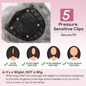 ✨ [Lightweight & Natural Look Wiglet Hair Topper] Made with 100% Japanese Revolutionary Fiber, this hairpiece mimics the feel, movement, and appearance of real human hair. Weighing only 1.7 oz (48g), it’s feather-light and comfortable, providing a realistic, natural look