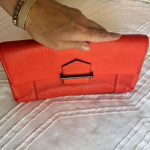 REED KRAKOFF LEATHER CLUTCH, CORAL