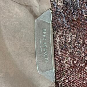 REED KRAKOFF skirt comes in a pink & silver marbled jacquard silk / viscose with a slip liner featuring a pencil style, back slit, and a zipper closure.