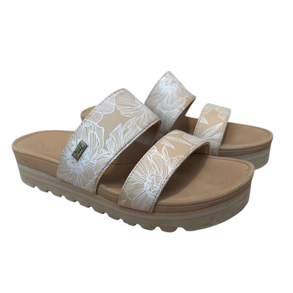 REEF Banded Horizon Hi Platform Slip On Cushion Comfort Slide Sandal, Beige 7