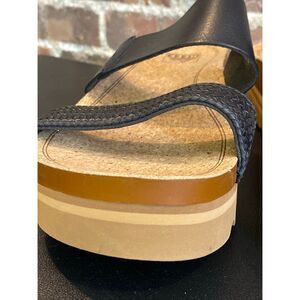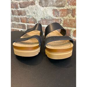 REEF • Black Vegan Leather Braided Double Strap Tan Cork/Foam 2” Sole Slide Sand