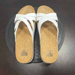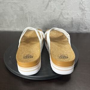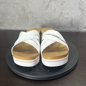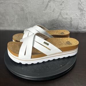 REEF Kaia Cross Women Size 10 White Vegan Leather Cushioned Slide Sandals