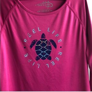 REEF LIFE Top in Pink Fuchia, Rose Blue Logo and Design. Size: XL