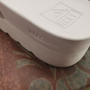Maybe worn once. Very good clean condition. The REEF Vista Hi Energy Women's Size 9.5 White Cushion Comfort Sandals are stylish and comfortable sandals perfect for casual occasions during the summer and spring seasons. With a slip-on closure and a flat heel style, these sandals feature a cushioned design for added comfort. The solid white color and logo accents add a touch of style to the classic slide design. Made with synthetic upper material, these Reef sandals are a great choice for women looking for both style and comfort in their footwear.