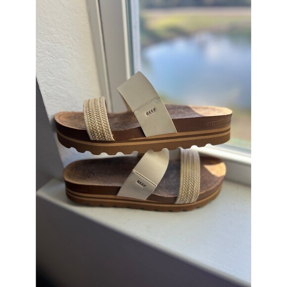 REEF Women’s Vista Hi Platform Sandals in Brown & Ivory Size 10