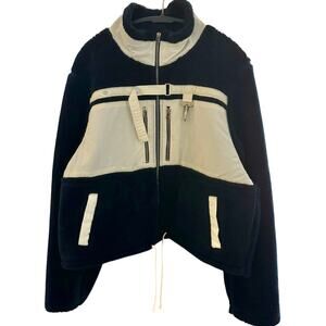 REESE COOPER Sherpa Fleece Cropped Jacket Navy Cream Size M
