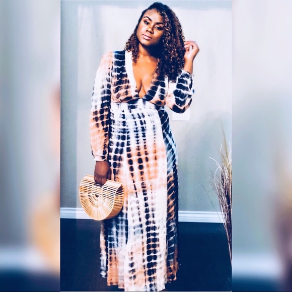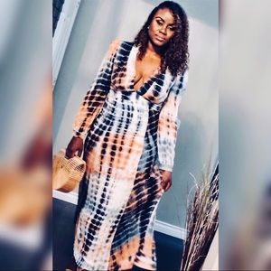 Features Long Sleeve, Deep V-Neck, and Tie-Dye Print