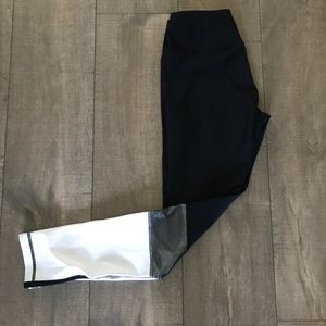 90 Degree by REFLEX full length leggings. Color block black and white with metallic grey mesh detail. Super cute. Size Small