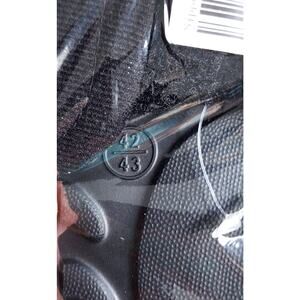 Pair of acupuncture/reflexology black rubber slip on slippers. These are men's size 10.5 and are 11" long. These are a hard plastic sole. The top has a hook and loop strap that opens for easy on and off - or could be slipped on without opening. The inside has acupuncture knobs that are all marked with the parts of the body that the pressure conforms to. The sole is a hard plastic and doesn't have any give. Reflexology pressure points liked to different organs and parts of the body.