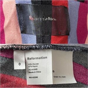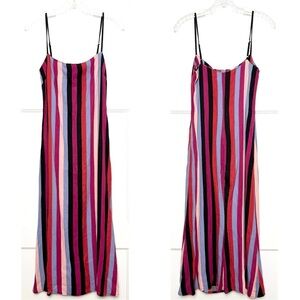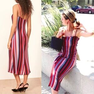 REFORMATION 90s Graphic Colorblock Stripe Square Neck Sleeves Midi Slip Dress 0