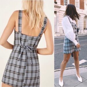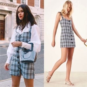REFORMATION 90s Linen Plaid Check Sleeveless Button Front Sheath Mini Dress L
