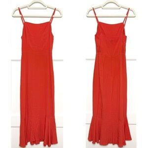 REFORMATION 90s Square Neck Sleeveless Fluted Ruffle Hem Slim Fit Midi Dress 4