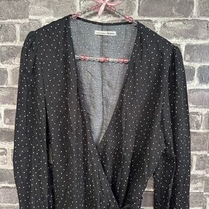 REFORMATION Alaina Wrap Top Ditto Dot Black White Polka Dot Print blouse shirt