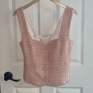 REFORMATION Amora Tweed-Textured Woven Top {$171} Pink Cream Pearl Buttons 10