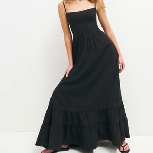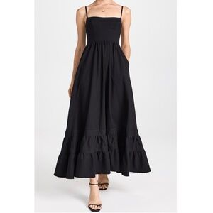 Brand new with tags long black cotton maxi dress from Reformation that retailed for $278. Very on trend right now as you can pair it with sandals. It has been hanging in my closet for quite a while now and has never been worn, so might as well give it a new home. It has adjustable straps, pockets, and extra stretch on the back to add more comfort.