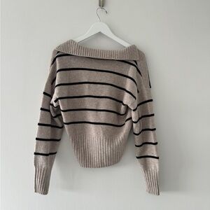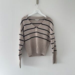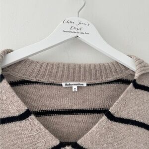 REFORMATION Beckie Cashmere Collared Sweater in Barely With Black Stripe M