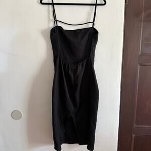 REFORMATION | Black Lenova Linen Open Back Pencil Midi Dress | Size 4