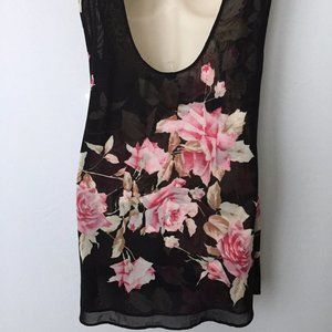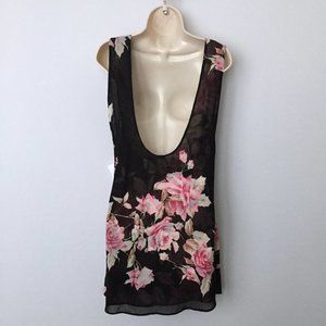Beautiful Black and Pink Floral Print Sleeveless Dress by Reformation. Scoop neck. Low back