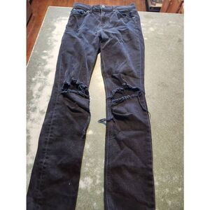 REFORMATION Camille Stretch Crop Cigarette distressed Black Denim Jeans sz 24 in good used condition with minimal wear.