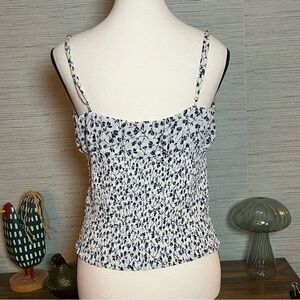 REFORMATION Carine Cami Top Floral Print Georgette Pixie Size L Smocked Bodice