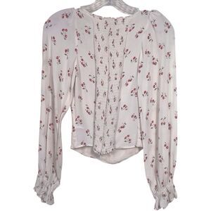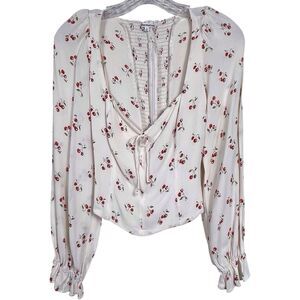 REFORMATION Chase Cherry Pit Blouse Top Size 4 Long Sleeve Cream Red Floral