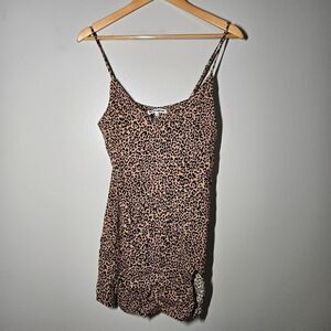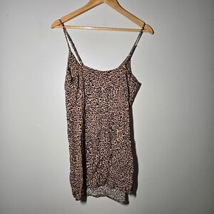 Sleeveless, scoop neckline, slip dress, animal print, tan, short