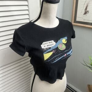 REFORMATION Cropped T-Shirt Womens Small Outer Space Graphic Cartoon Baby Tee