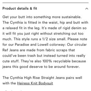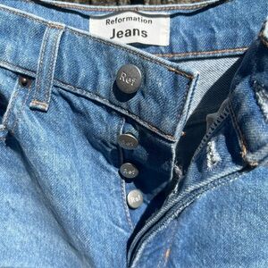 REFORMATION Cynthia High Rise Straight Jean Shasta Destroyed. Size 23.