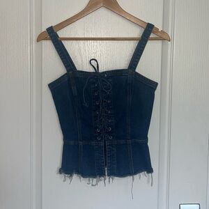 REFORMATION Denim LEXI Crop Blue Sleeveless Square Neckline Bustier Tie Front 4