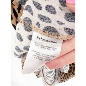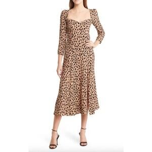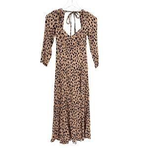 REFORMATION Dress Size 6 Leopard Print Midi Tan Smocked Tie Back