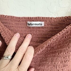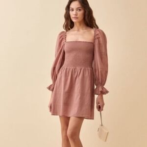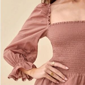 REFORMATION Dusty Rose Mauve Dunes Dress w Puff Sleeves and Lace detail Size 12