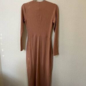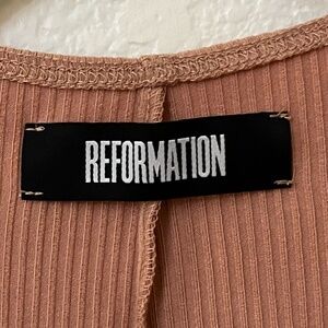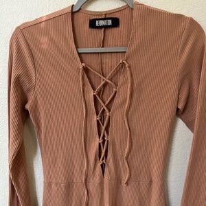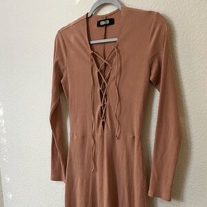 REFORMATION | Edison Blush Tan Stretch Ribbed Lace-up Long Sleeve Midi | Size M