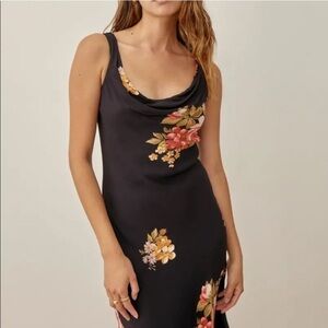 REFORMATION Emmeline Black Floral Mini Dress