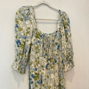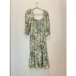 REFORMATION Enid Dress Green Blue Floral Midi Dress