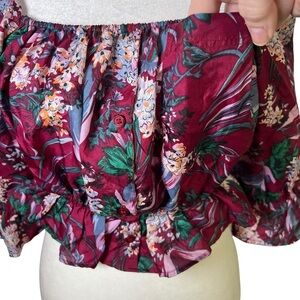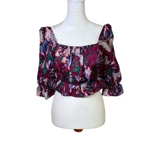 Stunning silky puff sleeve floral print cropped blouse from Reformation
