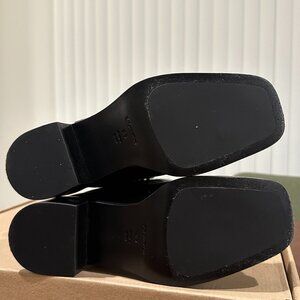 REFORMATION Francesca Moto Boots in black leather / silver hardware, size US 6.5. These stunning boots feature a rugged leather upper with moto-inspired buckle detailing and a block heel for just the right amount of edge. They're a pull-on style and the boots are 100% genuine leather. Comes with the original Reformation shoe box. These boots are true to size. Wish I could get more wear out of them, but I prefer boots with a higher heel since I'm short :)