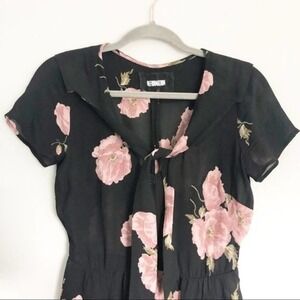 REFORMATION Fraser Black Floral Tie Short Sleeve V Neck Button Up Mini Dress 2