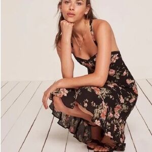 REFORMATION Giselle Dress Midi Floral Black Pink Size S M Garden Party Date