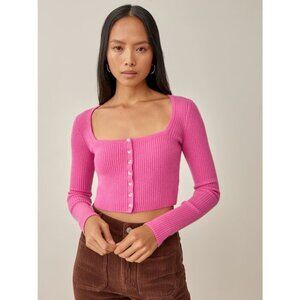 💕REFORMATION💕 Idina Cashmere Cropped Cardigan ~ Snapdragon Pink Medium M NWOT