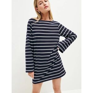 "Big easy. The Junia is a long sleeved oversized shirt dress with a crew neckline. It's relaxed fitting throughout for some extra comfort."