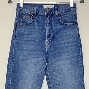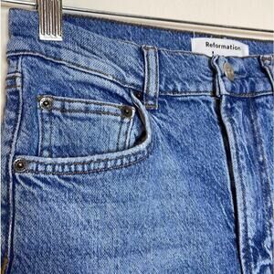 REFORMATION LIZA ULTRA HIGH RISE STRAIGHT JEANS SIZE 26. Zip fly button closure, belt loops, 5 -pockets style, organic cotton/elastane/ lyocell. pre-owned great condition. waist 26", rise 11.5", inseam 28.5".